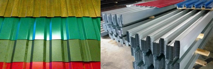 Если использовать вместо профнастила оцинкованную сталь в рулонах, то горизонтальных перехлёстов можно избежать. Ведь ходовая длина оцинкованного профлиста составляет 3 и 6 метров, а этого не всегда достаточно, чтобы перекрыть скаты крыши полностью. Но можно использовать декоративный профнастил с полимерным покрытием: его листы изготавливаются от 1,5 до 14 метров в длину (часто делаются под заказ). Только для крыши желательно выбирать модели с рёбрами жёсткости.