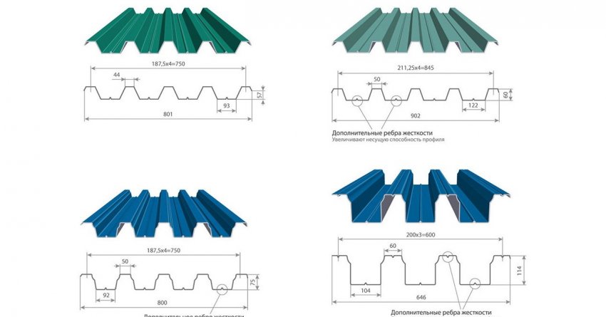 Несущий профиль имеет более высокую трапецию или волну и дополнительные рёбра жёсткости в продольной плоскости.