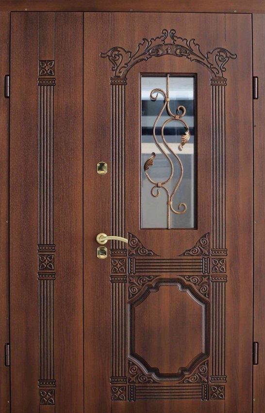 Сочетание дерева и металла даёт прекрасный результат при изготовлении входных дверей