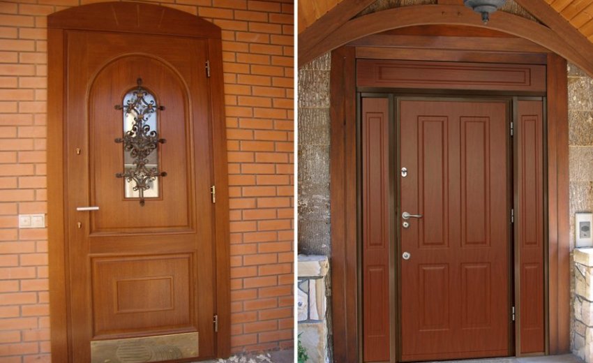 - Наиболее долговечны в эксплуатации утеплённые двери из дерева с металлическим каркасом. Такие конструкции оптимально подходят для загородного дома.