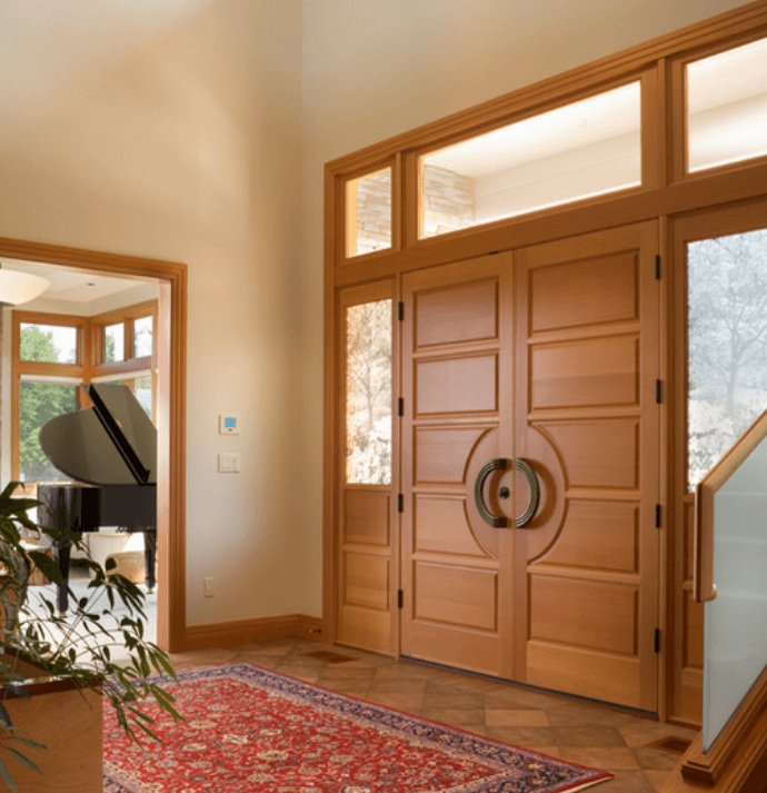 Двери должны соответствовать предполагаемой «начинке» жилища. В частности если в доме планируется разместить рояль, то входной проём должен соотноситься с размерами этого предмета. Кроме того, есть ряд особенностей именно для входных дверей: