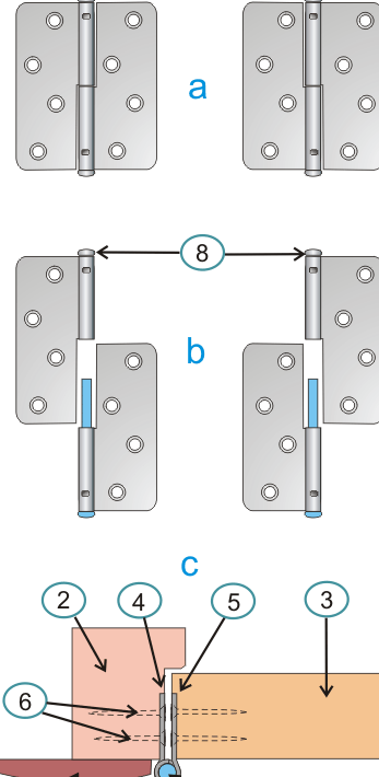 - Желательно для навески двери использовать петли внутренней установки, гарантирующие безопасность от взлома путём снятия с петель.