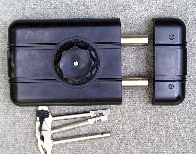 Основное применение накладного замка — входные деревянные двери загородного дома или квартиры