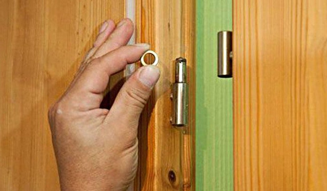 - Появление скрипа при перемещении створки. Причиной является износ петель или одной из них. Для устранения нужно открыть дверь полностью, монтажкой приподнять её и смазать трущиеся поверхности жидким минеральным маслом. Если износ значителен, необходимо сменить петли на новые. При этом рекомендуется смочить винты эпоксидным клеем или «ПВА-М» перед установкой. Это не касается крепежа, который не попадает в старые отверстия. Петли также можно сместить на новое место и крепить в обычном порядке.