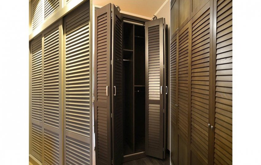Жалюзийные двери позволяют эффективно отделить гардеробную от основной комнаты