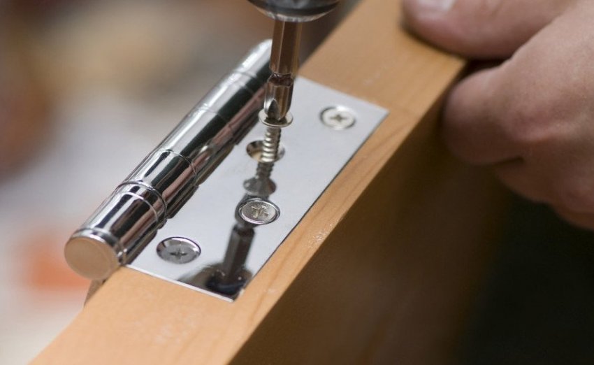 Петли для шкафа крепятся саморезами к дверце и стенке