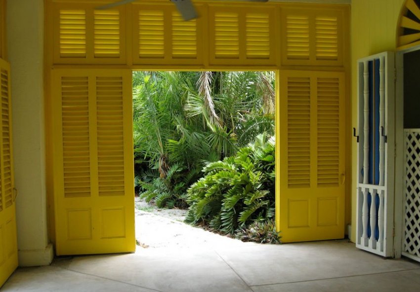 Жалюзийные ставни часто дополняют двери в доме, расположенном в жарком климате