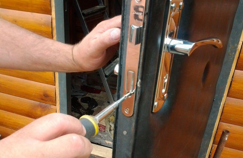 - На место старого замка монтируют новый с такими же параметрами или просто смазывают конструкцию специальным составом, нанося его в небольшом количестве. Сердцевину помещают внутрь полотна, фиксируют личинку, внешние элементы прикручивают на шурупы.
