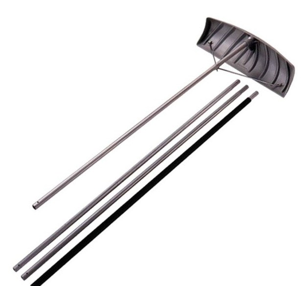Телескопическая ручка скребка позволяет удалять снег и сосульки, находясь на безопасном расстоянии от стены дома