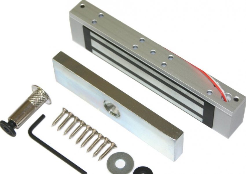 - Монтаж частей замка. Электромагнитный замок состоит из двух частей, одна из которых находится на самой двери, а другая — на дверном проёме, на этом этапе вам необходимо установить обе.