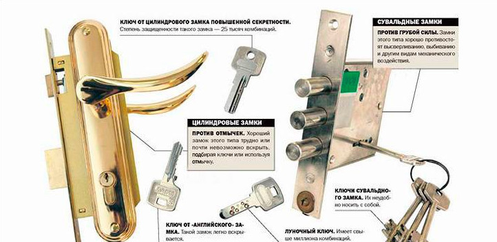 Цилиндровые замки сложно вскрыть отмычками, а сувальдные стойки к применению грубой силы