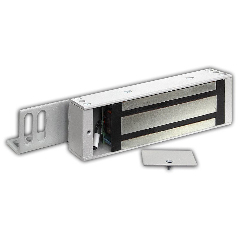 - Электромагнитные. Этот вариант практически ничем не отличается от предыдущего, но вместо механического дополнения к электронному замку здесь используются специальные магниты, удерживающие дверное полотно до его открытия. Электромагнитный замок может функционировать только при наличии постоянного электропитания, учитывайте это при приобретении. Сила удержания таких замков может доходить до 1 тонны, но из-за упомянутого ранее фактора рекомендуется устанавливать многозапорные или электромеханические модели, электромагнитные подойдут больше для офисных или промышленных зданий. Но если вы решите поставить такой замок на пластиковую дверь, то уделите внимание качеству сборки замка и его материалам.