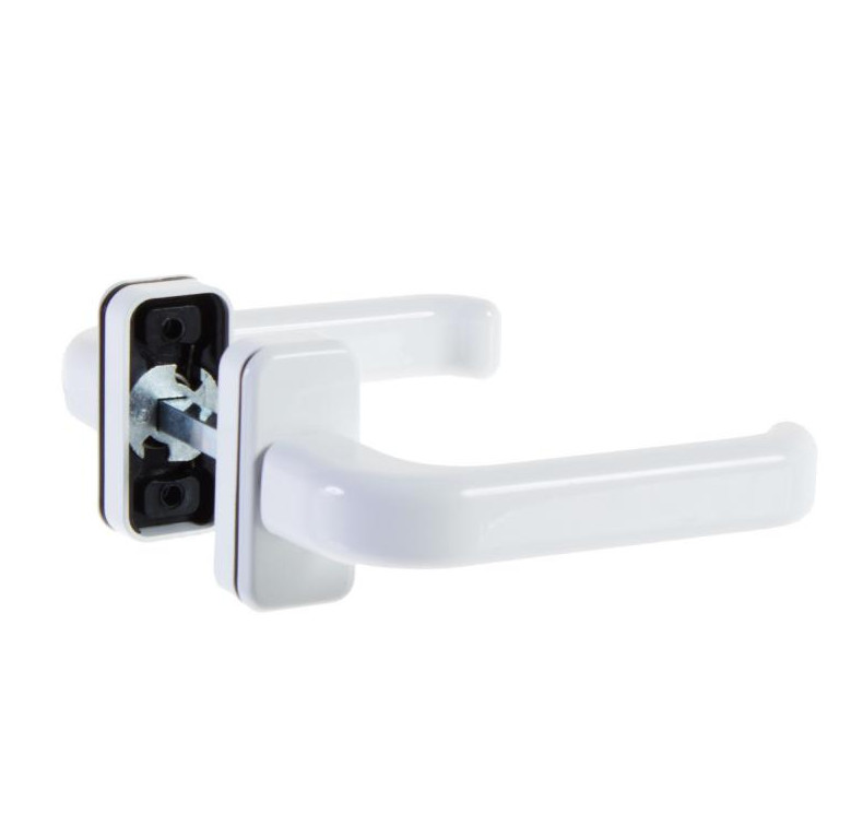 Ручка-защёлка. Стоит отдельно рассмотреть и ручки-защёлки, то есть самые простые механизмы без определённой защиты. Они чаще всего применяются в квартирах для установки на балконные двери. Их цена невелика, но и на надёжность рассчитывать не приходится. Упомянем, что и ручки-защёлки могут оснащаться дополнительными магнитными или электронными механизмами. При выборе стоит акцентировать внимание на эстетической составляющей, а также на отсутствии дефектов при нажатии на ручку.