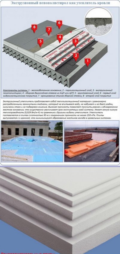 - Группа полистирольных утеплителей, к которой относятся экструзионный пенополистирол, пеноизол и пенополистирол — чаще остальных используемый для утепления кровель благодаря небольшому весу, длительности эксплуатации, низкой теплопроводности и умеренной цене. Однако пенополистирол имеет высокий уровень горючести — при температуре 90 °C он полностью разрушается.
