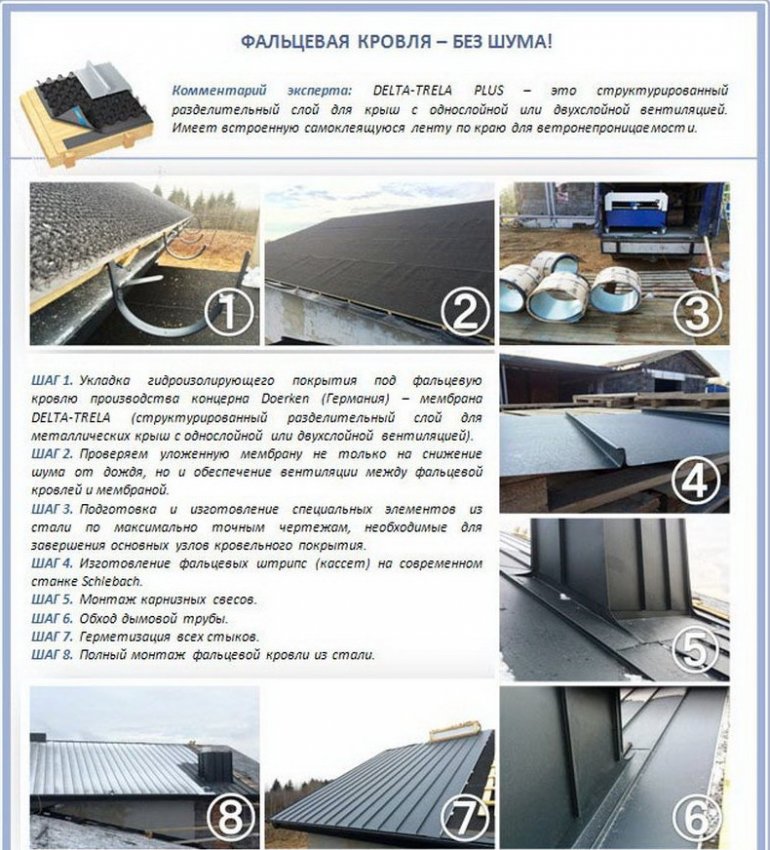 Для понижения шума металлических кровель необходимо использовать шумопоглощающие уплотнители, прокладывая их вдоль стропил или по центру листового укрывного материала