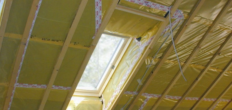 При утеплении крыши важно обеспечить вентиляционный зазор между теплоизоляционным материалом и закрывающей его плёнкой пароизоляции, которая обычно натягивается по торцам стропильных балок