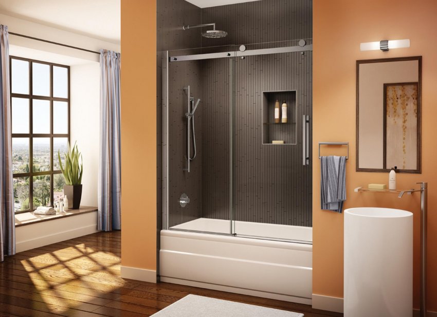 Некоторые способы открывания дверей подходят только для душевой ниши, а другие являются универсальными и уместны как в нише, так и для ограждения ванны или душевой кабины.