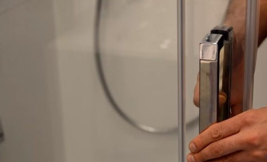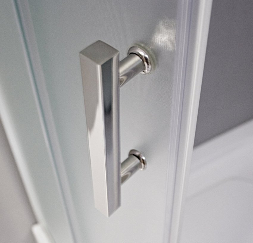 - Установите ручки на стекло. Под ручки имеются специальные отверстия, не забывайте постоянно пользоваться силиконовыми прокладками между стёклами и металлическими элементами. Помните, что все болты должны устанавливаться с внутренней стороны душевой ниши.