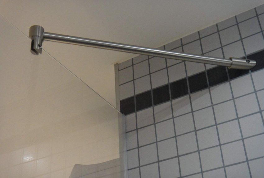- Коннекторы. Соединяют дверцу со стеной, полом, потолком и стеклянные панели между собой. Бывают трёх видов: линейные, высотные, угловые. Выбирая данную деталь, следует обращать внимание на материал, из которого она сделана: это должна быть нержавеющая сталь. А также важен угол раскрытия коннектора, здесь выбор зависит от типа конструкции, которая будет устанавливаться.