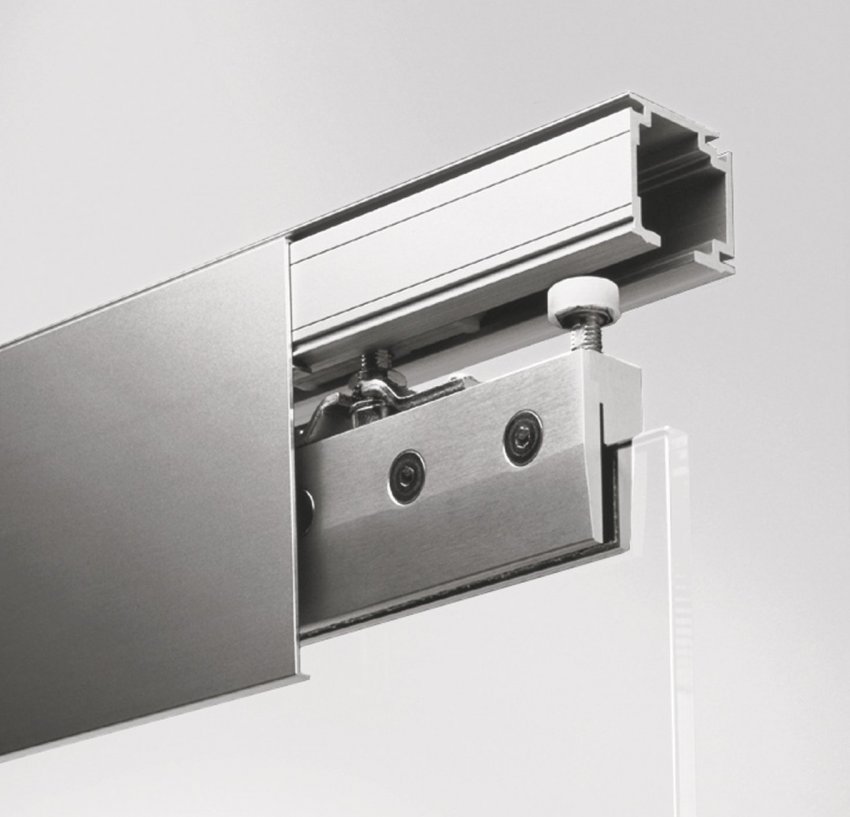 - Снимите с верхнего профиля ограничители, наденьте узлы крепления стекла и поставьте ограничители на прежнее место. Эти элементы имеют ролики, одновременно проследите, чтобы они точно лежали в канавках.