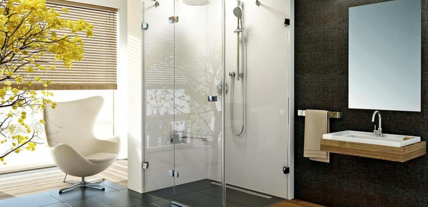 Выбирая стеклянную дверь, нужно учитывать параметры душевой и размеры ванной комнаты