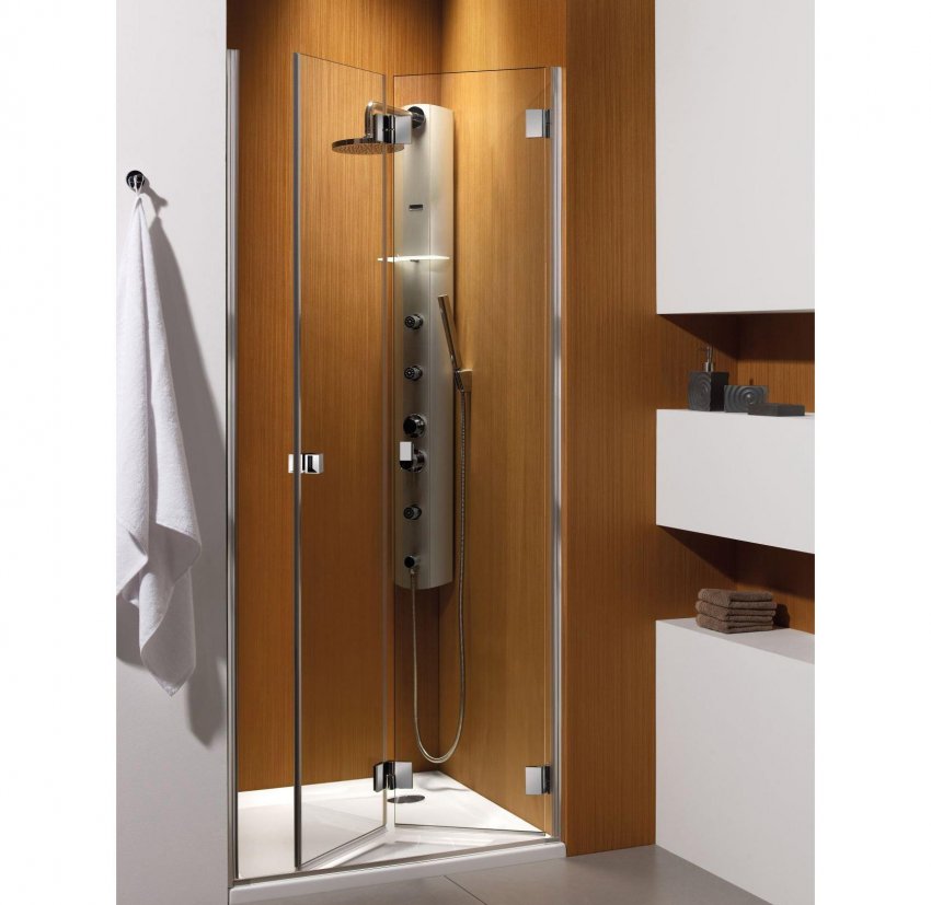 Складные двери представляют собой своеобразную гармошку, которая при открывании складывается вдоль стены. Подобная конструкция не занимает много места, а значит, подходит для маленьких помещений. Устанавливают такой тип дверей обычно в ниши или отгораживают ими душевые поддоны.