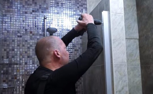 Работайте аккуратно, чтобы не повредить стеклянную поверхность и плитку
