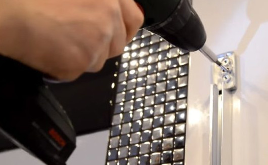 - Завершающий этап. Устанавливаем нижнюю пластину по тому же принципу, как были установлены алюминиевые профили.
