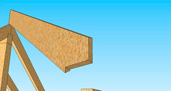 Для установки и крепления ветровой доски необходимо нарастить угловое стропило методом стыка под углом с применением накладки из дюймовой доски