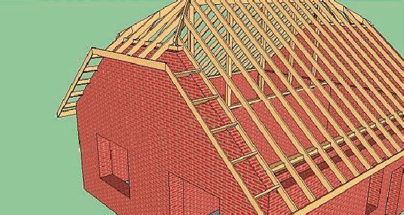 Процесс сооружения стропильной системы проиллюстрируем на примере полувальмовой крыши. Этот тип кровли сейчас применяется многими застройщиками, но имеет довольно сложную конструкцию. Поэтому её построение будет представлять достаточный интерес. Рассмотрим поэтапно, как это делается.