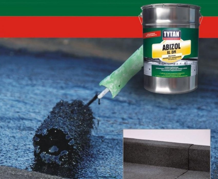 Рубероид крепят на специальную битумную мастику, которая представлена в нескольких вариантах. Еврорубероид уже имеет слой битума и поэтому не нуждается в применении отдельного состава, а для иных видов материала требуется мастика. Она может быть холодной или горячей. Первый вариант выпускается в жидком состоянии и не требует предварительного разогрева, но обеспечивает не такое плотное сцепление структур, как горячий вариант.