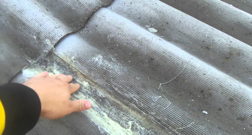 Если дом покрыт шифером и в нём появись небольшие трещины или отверстия, то их можно устранить, не снимая лист с крыши.