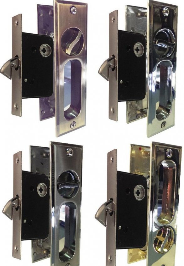 - Запорные устройства. Чтобы обеспечить безопасность, на входных дверях устанавливают ригельные замки, которые запирают полотна по всему его периметру. Для балконных и межкомнатных дверей могут применяться и другие, менее надёжные типы замков.