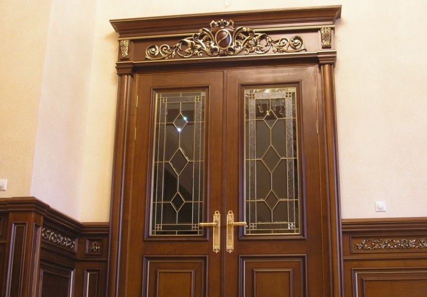 В квартиры можно устанавливать и деревянные двери, которые также представлены в большом разнообразии. Они имеют вставки в виде филёнок или из стекла. Последний вариант встречается редко, так как стеклянные элементы понижают теплоизоляционную способность полотна и его защитные свойства.