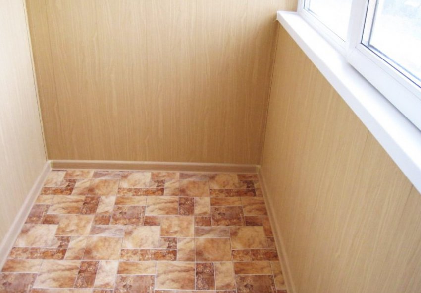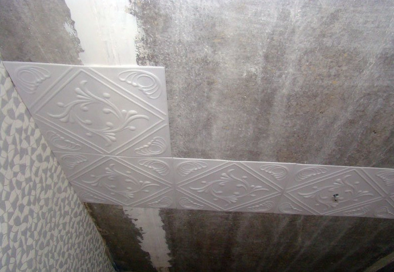 - гипсокартон и потолочная плитка — классический вариант. Потолок на балконе создают из гипсокартонных плит, монтируя их на алюминиевые профили. Щели между листами заделывают шпатлёвкой, а после высыхания приклеивают потолочную плитку.