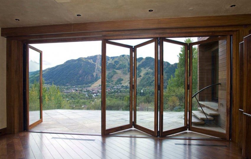 Складные стеклянные двери обычно устанавливаются на террасах и в нестандартных по размеру проёмах