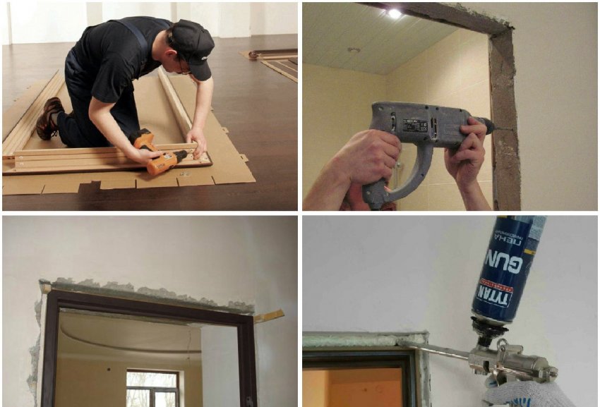 Если планируется ставить конструкцию с дверной коробкой, то последовательность выполнения будет следующей: