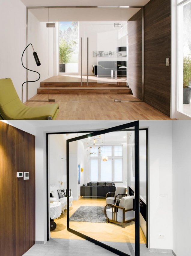 Стеклянная дверь в доме — необычное решение, подчёркивающее утончённый вкус владельца. Такая конструкция визуально расширяет пространство, пропуская свет. Само полотно изготавливается прозрачным или матовым. Современные технологии позволяют делать стеклянные двери прочными и безопасными, с хорошей звукоизоляцией. Используются они как в общественных зданиях, так и в жилых помещениях и саунах.