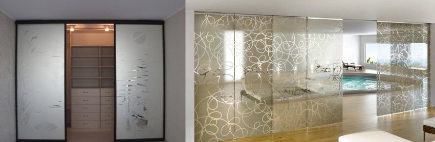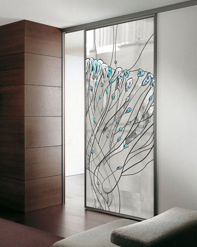 Двери из матированного стекла с нанесением рисунка становятся самостоятельным украшением комнат
