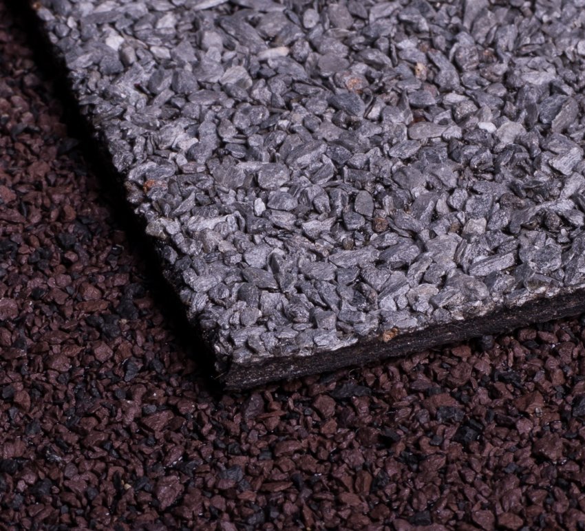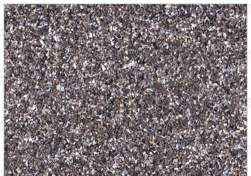 - крупнозернистой посыпки с фракцией 0,6–12 мм (размер частичек на вид определяется как мелкий щебень, отдельные камешки хорошо видны на расстоянии вытянутой руки). В качественном материале камешки утоплены в битум на половину высоты;