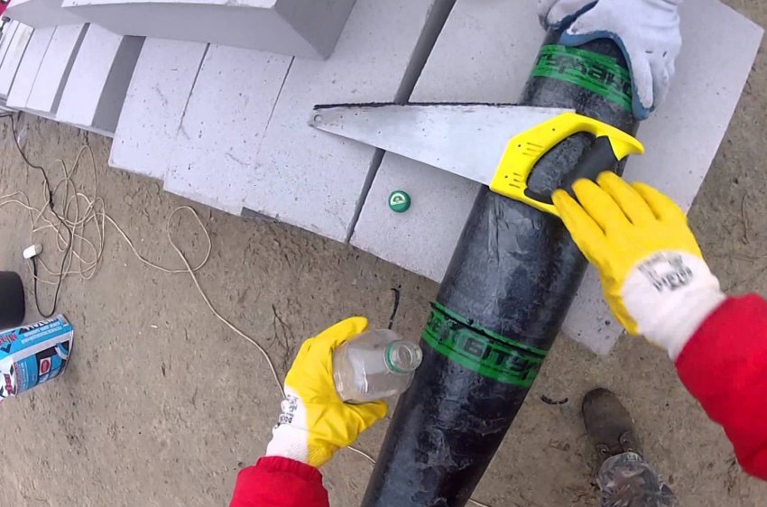 Обратите внимание — швы сразу изолируются расплавленным битумом