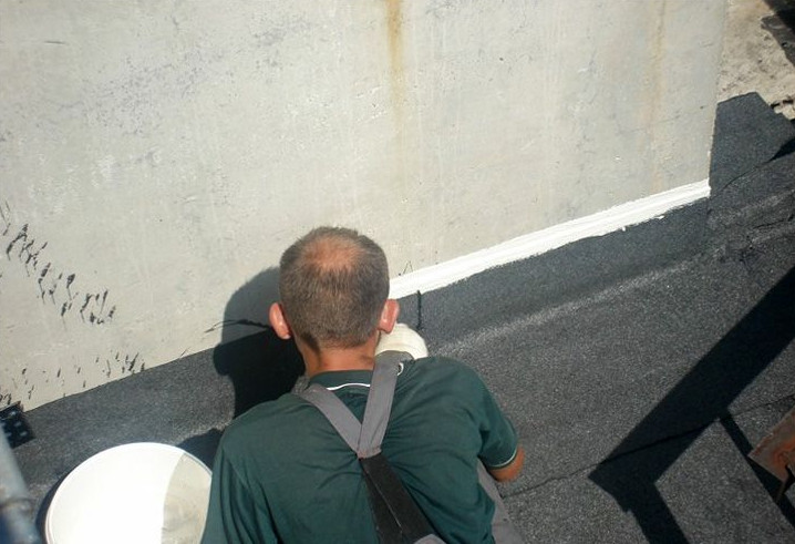 Наносить герметик кистью гораздо проще, чем клеить полосы рулонной кровли