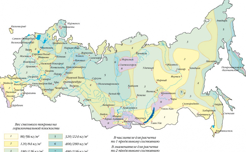 Карта снеговых нагрузок позволяет определить давление снега на кровлю в различных районах России