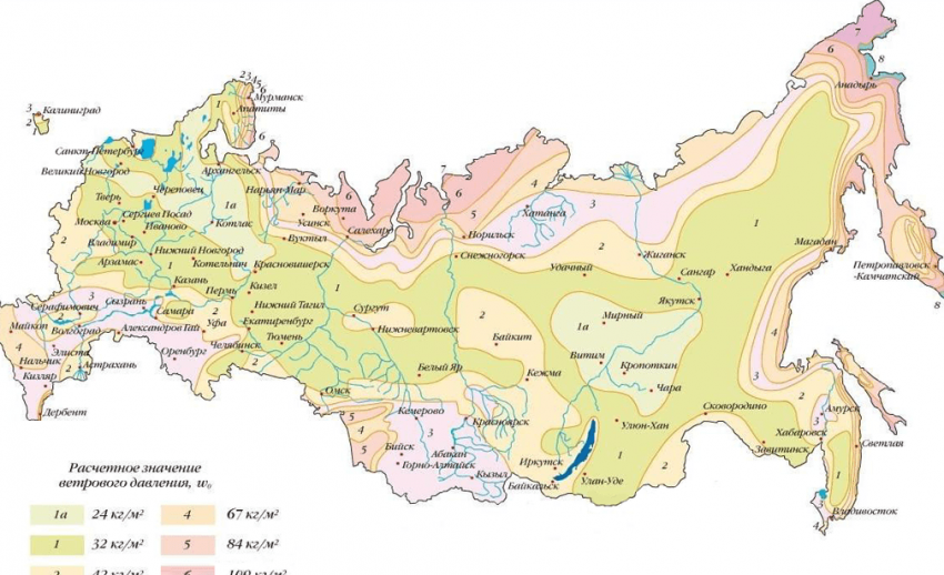 Карта ветровых нагрузок позволяет определить давление ветра на кровлю в различных районах России