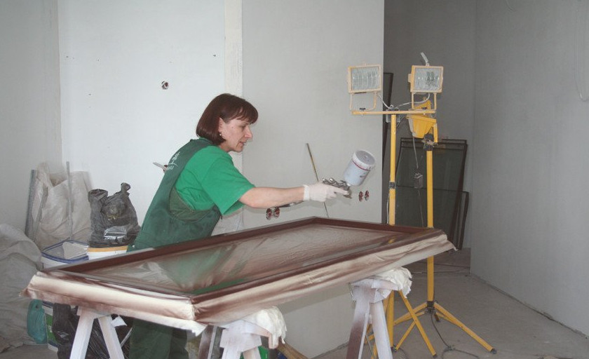 Покрытие дверей лаком производится в хорошо вентилируемом и освещённом помещении