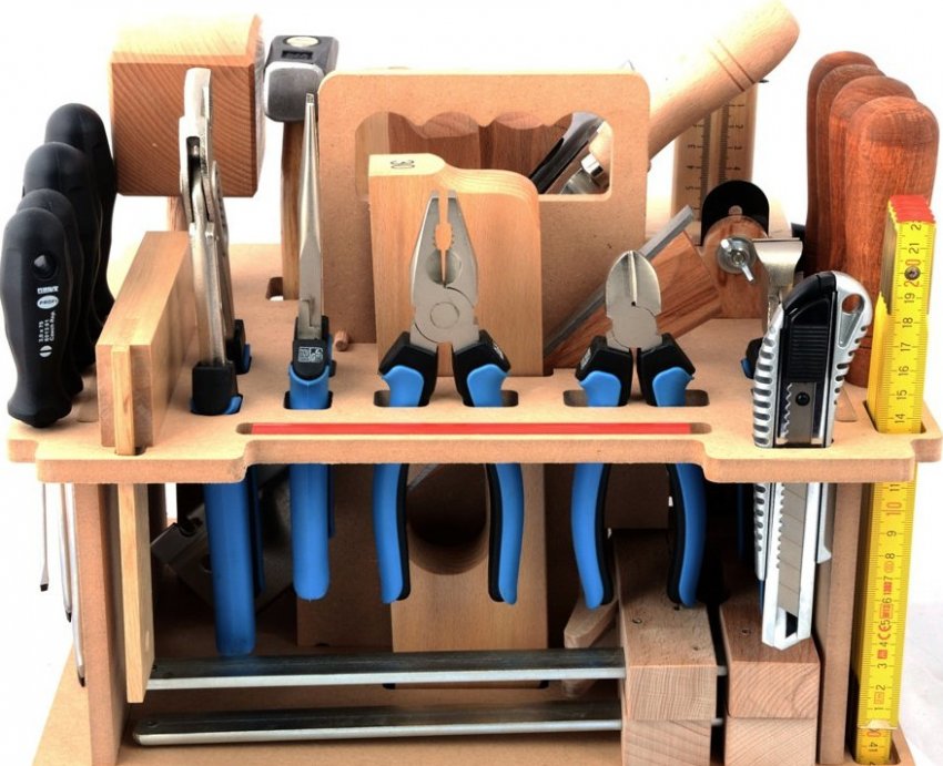 - Набор плотницкого ручного инструмента: молоток, киянка, стамески, струбцины и т. д.