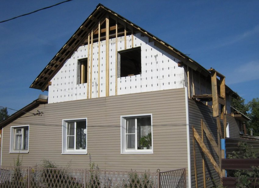 Дом со строящейся мансардой всегда привлекает взгляды прохожих и заинтересовывает в конечном результате