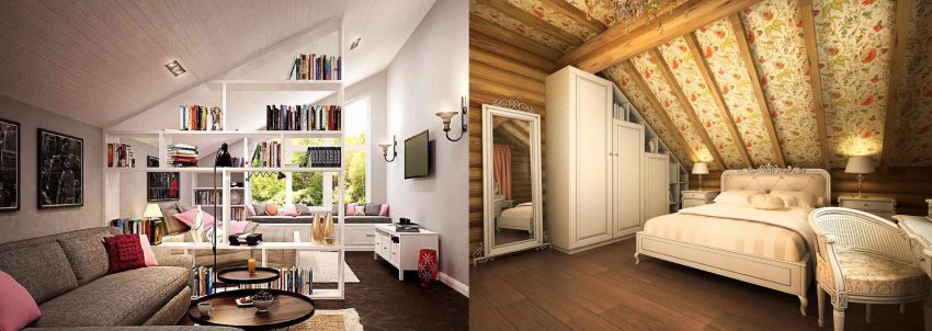 - необходимость приобретения специальной мебели под наклонную крышу или покупки приземистых моделей: невысоких шкафов, диванов и столов.