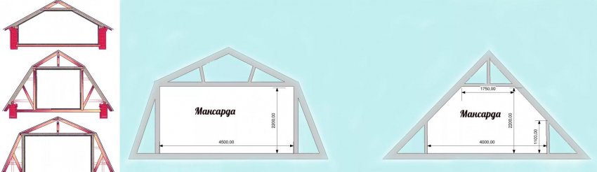 От типа мансардной крыши будет зависеть расчёт размеров внутреннего верхнего помещения и необходимых материалов для строительства