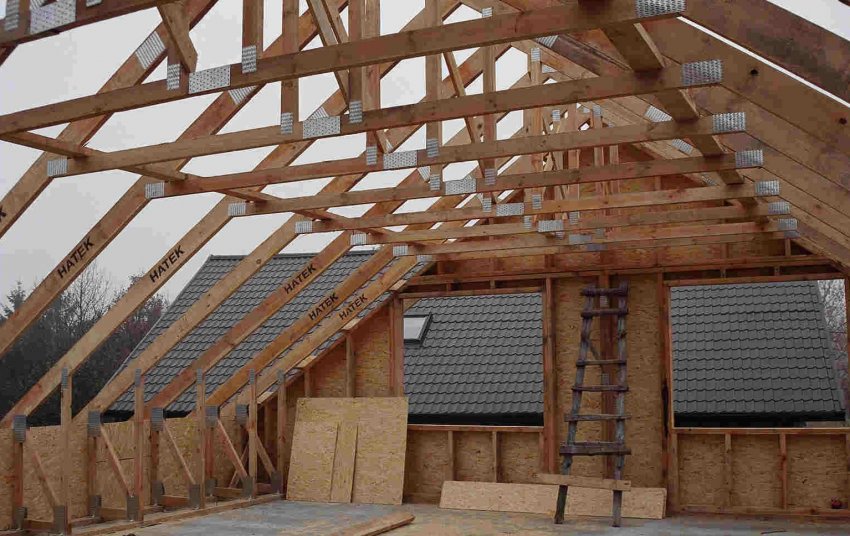 - Стропильная система — каркас мансарды: вместе с обрешёткой обеспечивает надёжность всей конструкции.